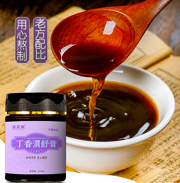 丁香渭舒膏是符合當(dāng)代人養(yǎng)脾胃的滋補(bǔ)膏滋,其中加入丁香、猴頭菇、沙棘、雞內(nèi)金等多味食材。